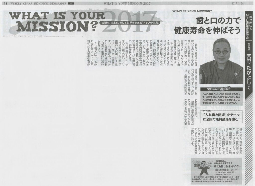 大阪日日新聞に代表理事宮野たかよしの2017年の抱負が掲載されました。